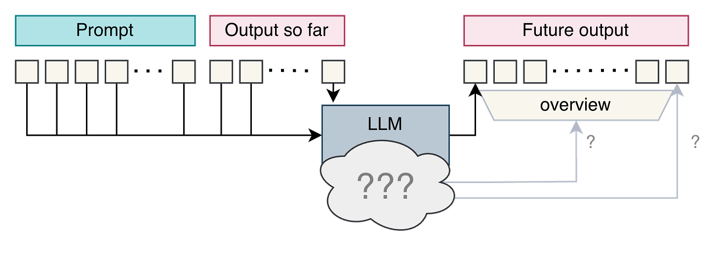 The model has a vague outline of what the whole outline is going to say but hasn’t written it down.